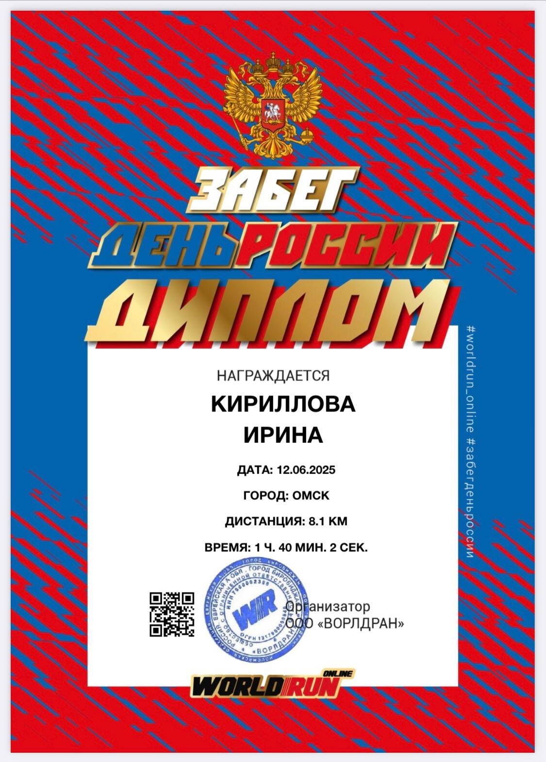12 июня -День России. И каждый празднует этот день по-разному. Мы уже второй раз участвуем в Забеге и сегодня бежали за нашу страну. За нашу великую Россию!!!🏆Сила России в каждом из нас! А Родина-наша главная ценность на все времена!!! Только в единстве мы преодолеем все трудности, добьёмся новых...