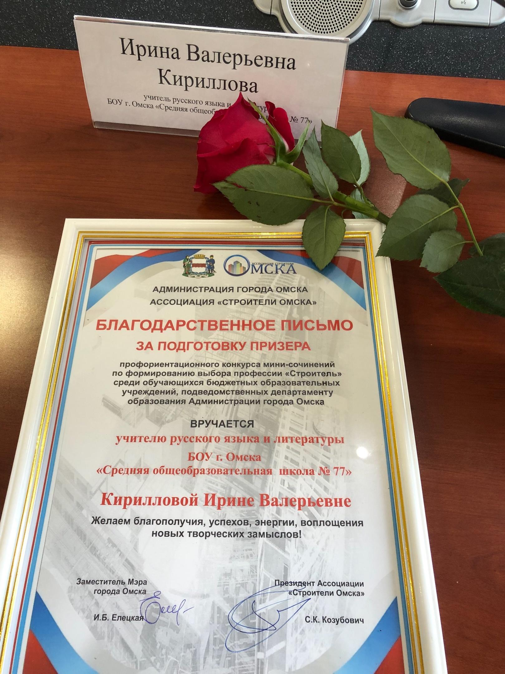 За подготовку призеров и победителей благодарственным письмом Администрации города Омска и Ассоциации «Строители Омска», а также благодарственным письмом Национального объединения строителей наградили наставников, которые помогли ребятам подготовить конкурсные сочинения.